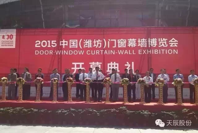2015年5月16日-18日,第十届中国(潍坊)门窗幕墙展览会在山东潍坊鲁台国际会展中心盛大开幕。 济南天辰铝机股份有限公司(以下简称“天辰股份” )作为设备行业的领军企业,携主力产品前往潍坊参加2015全国门窗幕